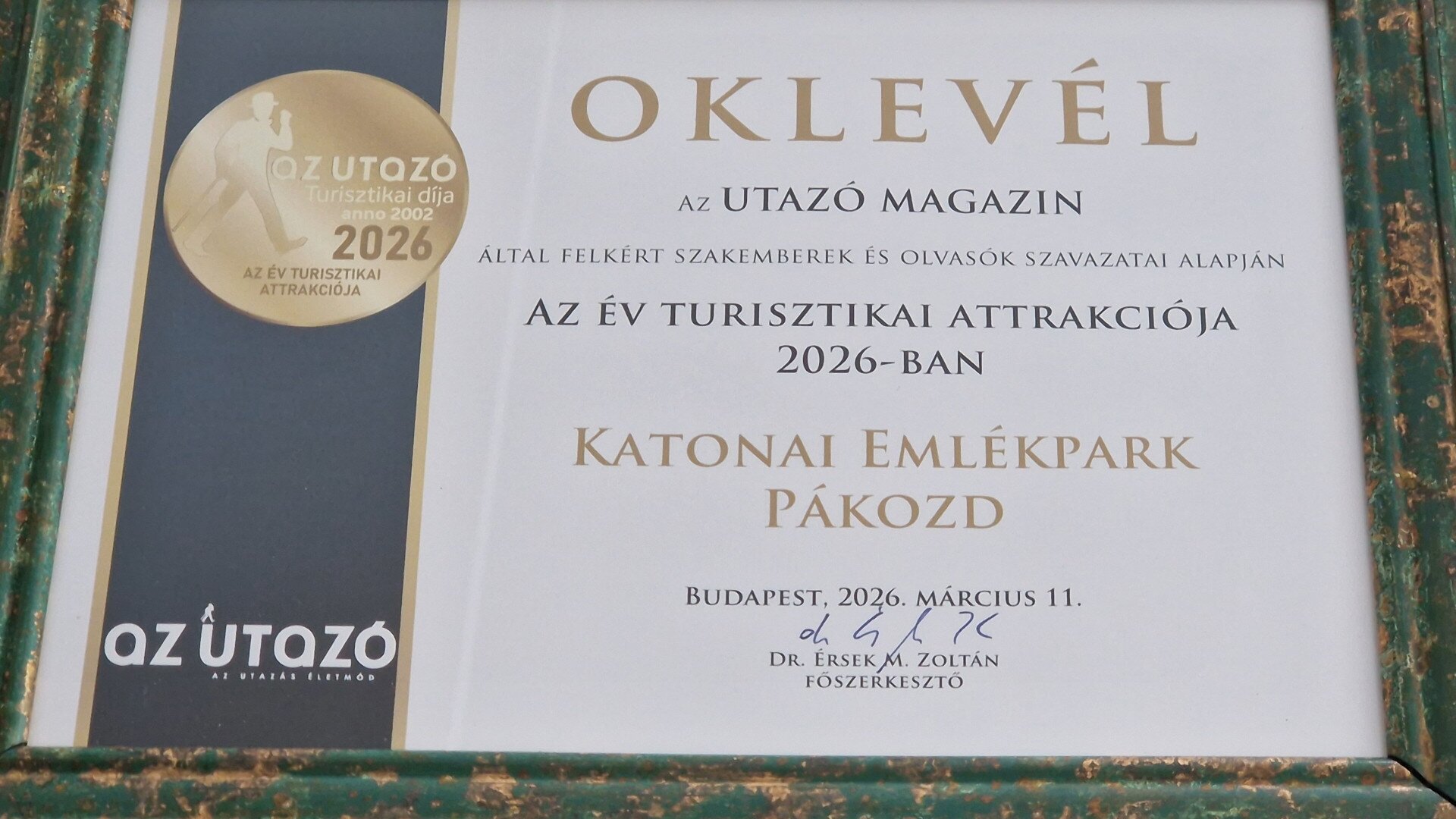 Nagy örömmel osztjuk meg, hogy a pákozdi Katonai Emlékpark elnyerte „Az év turisztikai attrakciója” címet Az Utazó magazin idei közönségszavazásán. Számunkra ez az elismerés különösen értékes, hiszen közvetlenül a látogatók visszajelzésein alapul. A díjat Budapesten, ünnepélyes keretek között adták át, ahol a hazai turizmus legjobbjait ismerték el. A díjazottak között szerepel még Székesfehérvár is, amely az év turisztikai városa lett.