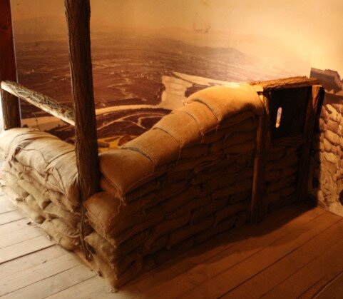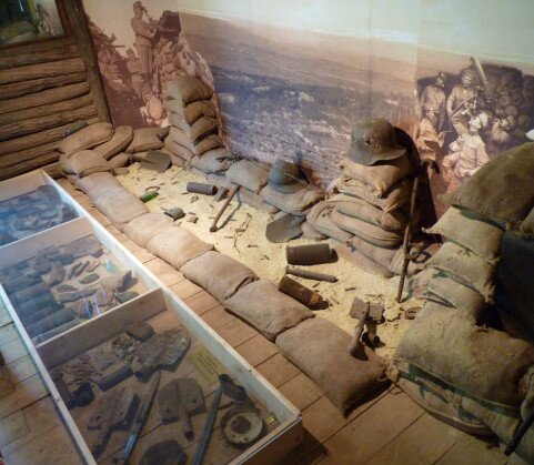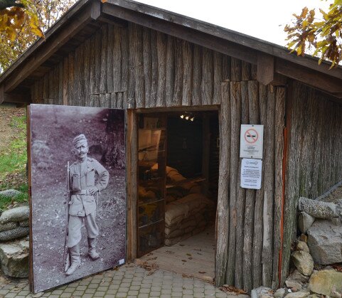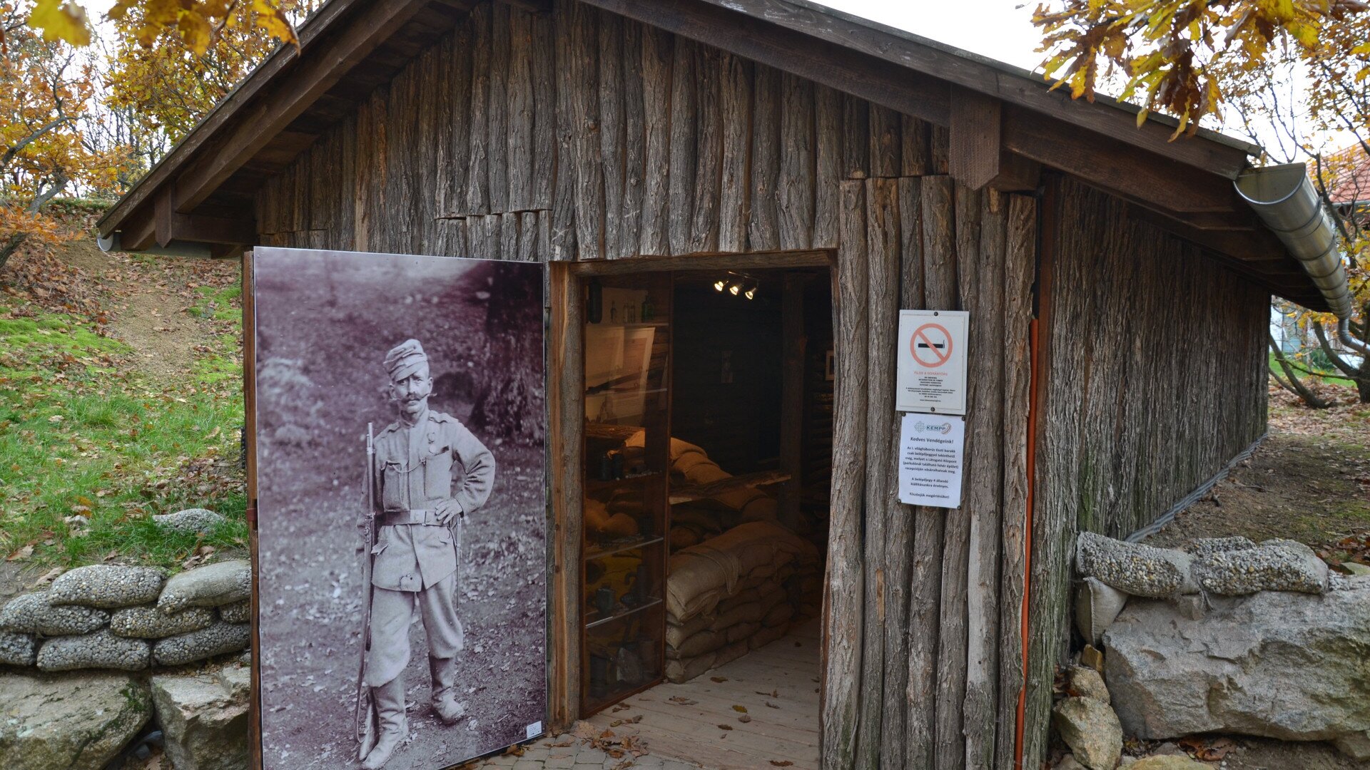 Az első világháború időszakában sok haditechnikai újítást fejlesztettek ki a mérnökök, többek között ekkor alkalmaztak először nagy tömegben vegyi fegyvereket. A faépület emléket állít egy kevéssé ismert, de súlyos magyar részvételű gáztámadásnak is, az Osztrák-Magyar Monarchia hadseregében magyar csapatok is alkalmaztak vegyi fegyvert, mégpedig az olasz hadszíntéren. A leginkább elhíresült gáztámadást 1915. április 22- én Ypernél, mintegy 6 km-es arcvonalon az állásokba telepített több ezer folyékony klórt tartalmazó gázpalack felhasználásával hajtották végre a németek. Egy évvel később, 1916. június 29-én, már az olasz fronton is bevetették a gázt. József főherceg, a Doberdó-fennsíkot védelmező VII. hadtest parancsnokának a főparancsnokhoz írt tájékoztatása szerint „...a jelenlegi állásnak biztos megtartása, az emberanyag kímélése és a csapatok ellenálló erejének fenntartása érdekében sürgősen cselekedni kell...”. Ennek okán javasolta a gáztámadást, mely egyetlen módja lehetett a túlerő legyőzésének. Az olasz hadseregben a gáz elleni védekezés ekkor még nagyon kezdetleges volt, így jó eséllyel remélték, hogy a támadás következtében a frontvonal legalább 3 km-el megrövidülhet, így a monarchia csapatai fölénybe kerülhetnek. A szörnyű támadás azonban nem váltotta be a hozzá fűzött reményeket. Nem sikerült a frontszakaszt lerövidíteni, de az ellenséges állásokat lerombolták, a haditechnikát megsemmisítették. Az olasz oldalon közel 6.000 áldozatot követelő támadás a magyar oldalon is 235 fő halottat és közel 1.500 fő sebesült, vagy eltűnt katonát eredményezett.